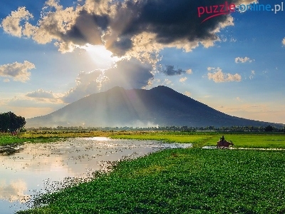 Puzzle Góra, Rozlewisko, Trawa, Niebo