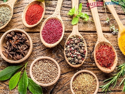 Curry, Łyżki, Anyż, Drewniane, Deski, Pieprz, Papryka, Przyprawy, Miseczki, Gorczyca