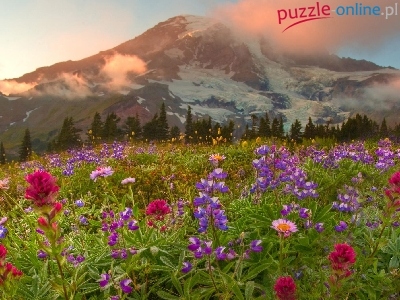 Puzzle Łąka, Góry, Kwiatki