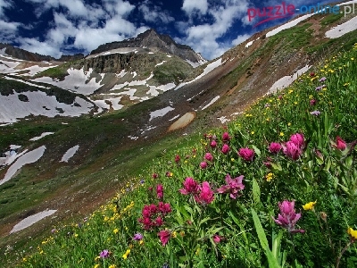 Puzzle Łąka, Góry, Kwiaty