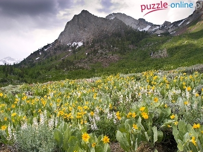 Puzzle Łąka, Góry, Kwiaty