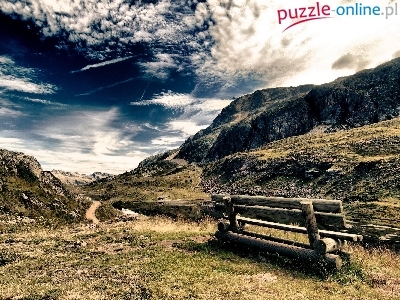 Puzzle Ławka, Góry, Niebo