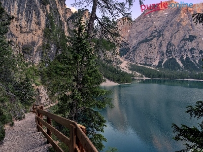 Dróżka, Góry, Świerki, Włochy, Jezioro Pragser Wildsee, Barierka