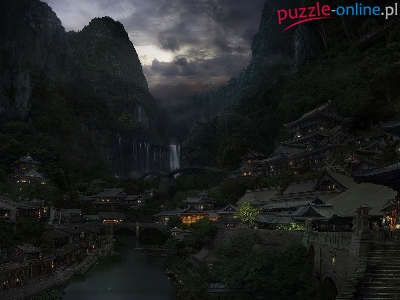 Puzzle Góry, Miasto, Chiny, Wodospad