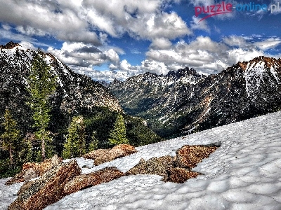 Puzzle Chmury, Góry, Śnieg
