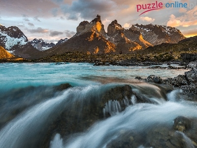 Góry Cordillera del Paine, Patagonia, Rzeka, Chile, Park Narodowy Torres del Paine, Masyw Torres del Paine