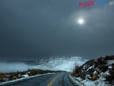 Puzzle Góry, Księżyc, Droga, Śnieg