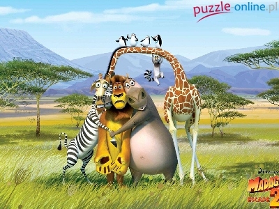 Madagaskar 2 Drzewa, Góry, Madagaskar Zebra, Hipopotan, Madagaskar, Żyrafa, Lew
