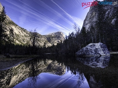Puzzle Drzewa, Góry, Odbicie