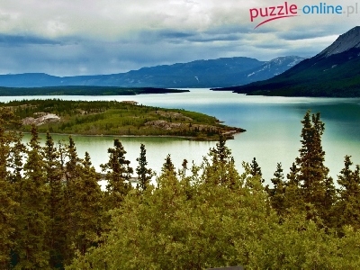 Góry, Kanada, Rzeka, Drzewa, Yukon