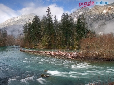 Puzzle Góry, Rzeka, Drzewa, Mgła