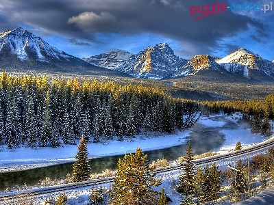 Góry, Niebo, Tory, Drzewa, Rzeka