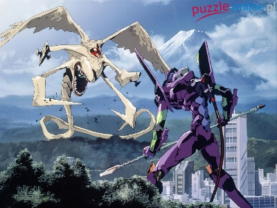 Puzzle góry, walka, miasto, Neon Genesis Evangelion