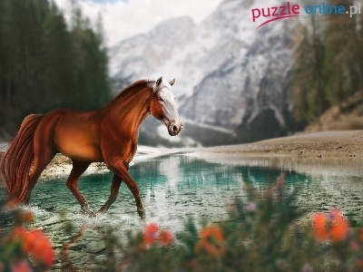 Puzzle Góry, Koń, Rzeka, Grafika 2D