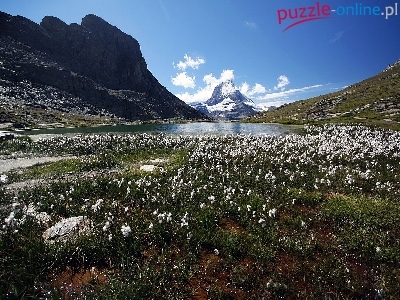 Góry, Szwajcaria, Łąka, Jeziorko, Matterhorn