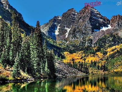 Puzzle Jezioro, Góry, Choinki