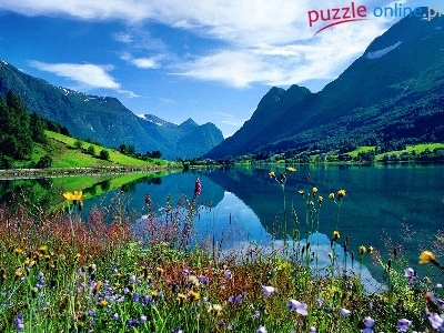 Puzzle Jezioro, Góry, Roślinki