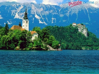 Góry, Zamek, Słowenia, Kościół, Jezioro, Bled