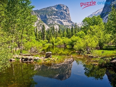 Stan Kalifornia, Góry, Odbicie, Jezioro, Stany Zjednoczone, Park Narodowy Yosemite, Drzewa