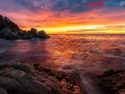 Góry, Słońca, Morze, Kamienie, Zachód