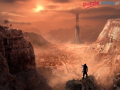 Góry, Fantasy, Wojownik, Grafika, Kanion, Miasto