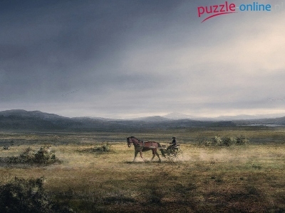Puzzle Koń, Góry, Powóz