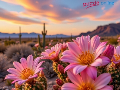 Puzzle Kwiaty, Kaktusy, Różowe, Góry