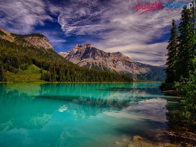 Jezioro Emerald Lake, Lasy, Kanada, Park Narodowy Yoho, Góry