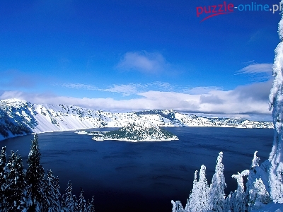 Góry, Wyspa, Jezioro, Las, Śnieg