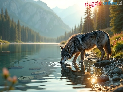 Puzzle Las, Wilk, Rzeka, Góry