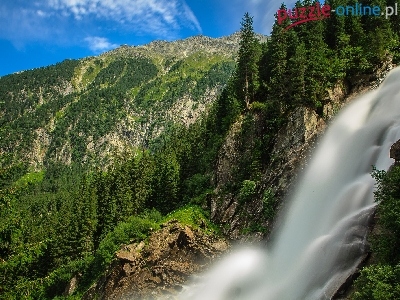 Góry, Austria, Wodospad, Lasy, Alpy