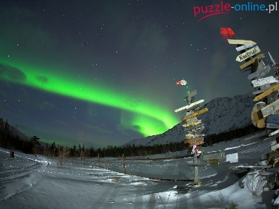 Góry, Polarna, Drogowskazy, Zorza, Śnieg, Noc