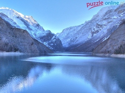 Puzzle Śnieg, Góry, Jezioro