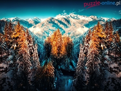 Puzzle Góry, Zima, Śnieg, Drzewa