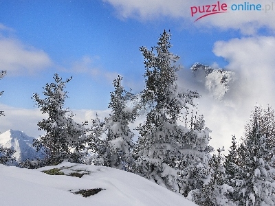 Puzzle Góry, Zima, Śnieg, Świerki