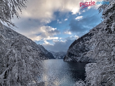 Zima, Bawaria, Góry Alpy, Niemcy, Park Narodowy Berchtesgaden, Jezioro Königssee