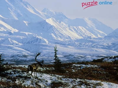 Góry, Alaska, Renifer, Ośnieżone, Zima