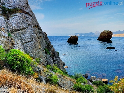 Góry, Morze, Krzewy, Krym, Plaża, Skały