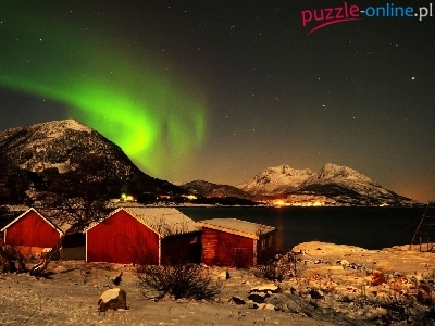 Góry, Zima, Zorza, Polarna, Dom