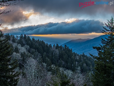 Góry, Stan Karolina Północna, Las, Stany Zjednoczone, Park Narodowy Great Smoky Mountains, Chmury
