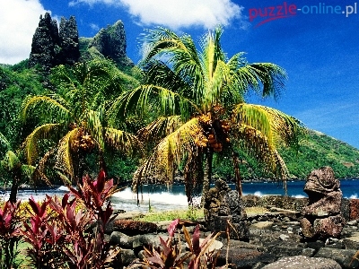 Puzzle Góry, Palmy, Roślinność, Woda