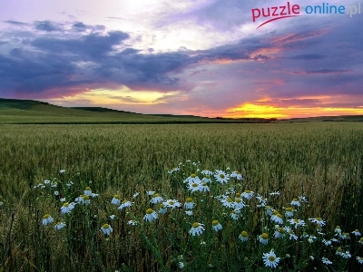 Góry, Zboże, Słońca, Pole, Rumianki, Zachód