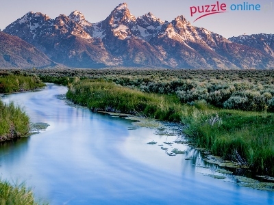 Puzzle Rzeka, Góry, Trawa