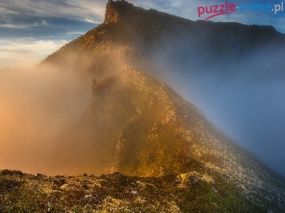 Góry, Szczyty, Norwegia, Wyspa Senja, Mgła