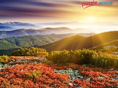 Góry, Rośliny, Promienie, Słońca, Las