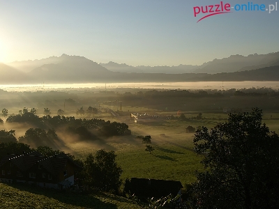 Puzzle Góry, Wschód, Słońca, Mgła