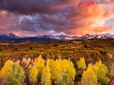 Puzzle Góry, Zachód, Słońca, Drzewa