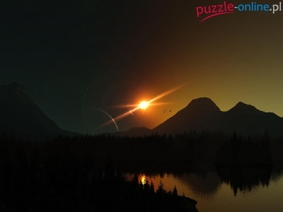 Puzzle Góry, Zachód, Słońca, Jezioro
