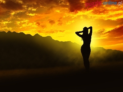 Puzzle Góry, Zachód, Słońca, Kobieta