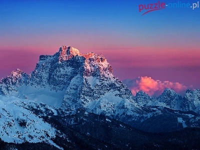 Puzzle Góry, Zachód, Słońca, Śnieg